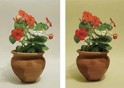 משמאל: איזון לבן ידני הביא לקבלת צבעים מאוזנים יותר.