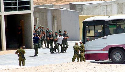 "באנו בשלום מטעם מדינת ישראל ואנחנו רוצים שייגמר בטוב. אנא, צאו מהבית", כך פנו היום (ג') חיילים ושוטרים אל חבריהם ששיחקו מתנחלים בתרגיל הפינוי המסכם המתקיים במתקן האימונים בצאלים, לעיניהם של שר הביטחון מופז והרמטכ"ל חלוץ. התרגיל "היבש" הוכתר בהצלחה. מחוץ לבסיס הפגינו כמה עשרות פעילי ימין "אמיתיים".