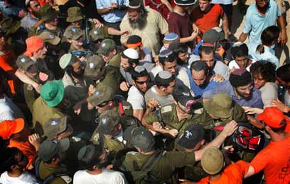 מול צוותי התקשורת הרבים, שרו התושבים, שחסמו מוקדם יותר את כביש הגישה לנוה-דקלים, "עוצו עצה ותופר". גורמים בצה"ל אמרו ל-ynet כי על אף החסימות והניסיון לפגוע בכלי-הרכב של הכוחות, אין כוונה להתעמת בשלב זה עם התושבים. "נפעל לאט ובצורה זהירה, לא ממהרים לשום מקום, אך לא נוכל להשלים עם הפרות סדר".
