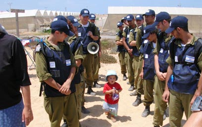 בעת שהורים בהתנחלות התעמתו עם החיילים המפנים, העדיפו חלק מהילדים לשחק בחצרות עם החיילים. לפעוט איתמר היה תנאי להתפנות - הוא העמיד את החיילים בשני טורים וחילק לכל חייל במבה. וגם: על מראות הפינוי במורג, פינוי הישיבה העצוב בנווה דקלים וסערת הרגשות בגני-טל. הסיפורים והתמונות של יום הפינוי הכפוי הראשון