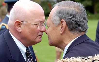 השגריר הישראלי (משמאל) ומנהיג המאורים ניית'ן (צילום: איי.פי)
