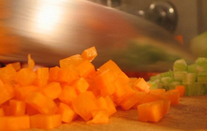 חיתוך ירקות ארומטיים ל"מיר-פואה" (צילום: נועם לוי)