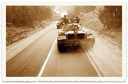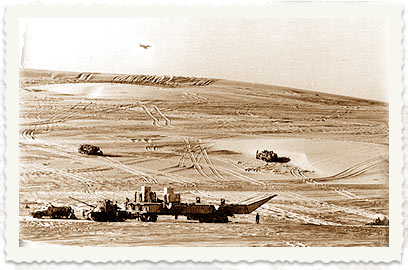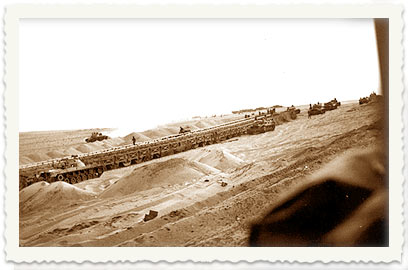 כוח טנקים יוצא לשטח הכינוס של הדוברות, לצורך גרירתן אל קו המים. בשמים חיפוי אווירי.