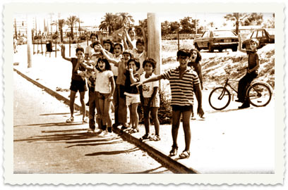 ילדי באר שבע מנופפים לשלום לשיירת החטיבה.