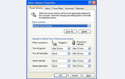 דרייבר ה-ACPI של XP מותקן במהלך האתחול, ותמיכת החומרה מזוהה אוטומטית. לכן, כדי לוודא במה תומך המחשב שלכם הדבר הפשוט ביותר לעשות הוא להיכנס לחלון ה-Power Options בלוח הבקרה. כדאי לעשות את זה לפני שתגלו שמשהו לא עובד כפי שרציתם.