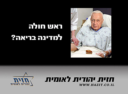 ניסיון ראשון לעשות שימוש במצבו הבריאותי של ראש הממשלה במערכת הבחירות: בעלונים שהפיץ הימין הקיצוני ברחבי ירושלים נראה אריאל שרון לבוש בפיג'מה של בית חולים ומחובר לאינפוזיה.