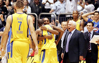 שארפ חוגג עם סולומון. "לא חיפשנו נקמה" (צילום: ראובן שוורץ)