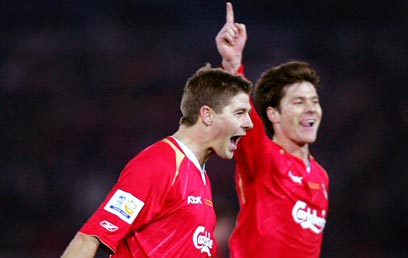 סטיבן ג'רארד וצ'אבי אלונסו. ליברפול בונה על תואר שני (רויטרס)