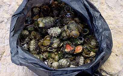 אילת: שני אזרחים סינים נתפסו "על חם" כשהם שולים מהמים מאות צדפות ורכיכות, בהם נדירות - כנראה לשם אכילה. מנהל רשות הטבע והגנים באילת: כל עובד זר, גם אם הוא חוקי, שייתפס עוסק בציד בלתי חוקי או פוגע בערכי טבע מוגנים - יגורש מהארץ