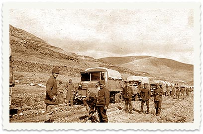 בחודש מאי 1918 מתקבלת פקודה לעביר את בית החולים לשכם. בתצלום: "השיירה שלנו בדרך לשכם".