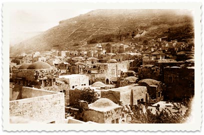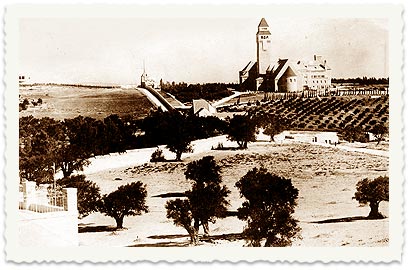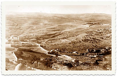 מבט מהר הזיתים לכיוון צפון. משמאל לכנסיית אוגוסטה ויקטוריה משתרע הרכס עליו נמצאת היום האוניברסיטה.