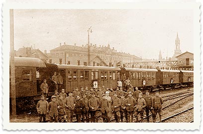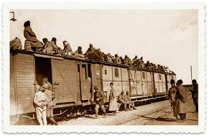 "הסתיימה המלחמה. אנו ברכבת הצלב האדום בתחנת קונסטאנצה" (מרץ 1919).