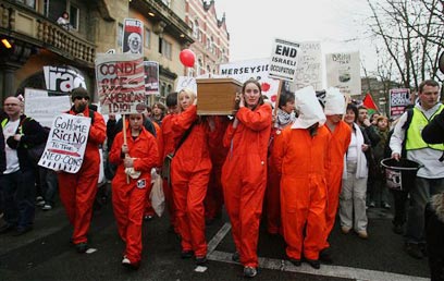 כ-300 מפגינים, רובם ממתנגדי המלחמה בעיראק, קידמו את פניה של מזכירת המדינה בסמוך לביתו של מארחה, שר החוץ הבריטי ג'ק סטרו, בבלקברן שבבריטניה. למקום הגיעו גם מספר תומכים ברייס.