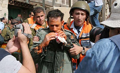 שוטר מג"ב פצוע, הבוקר בחברון (צילום: דודי ועקנין)