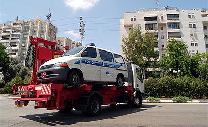 ניידת משטרה בהדר יוסף. גרירה אחידה לכולם (צילום - אבי כהן)