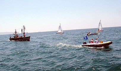 משט המחאה. "לא ייתכן שתושבים לא יירחצו בים" (צילום: אחיה ראב"ד)