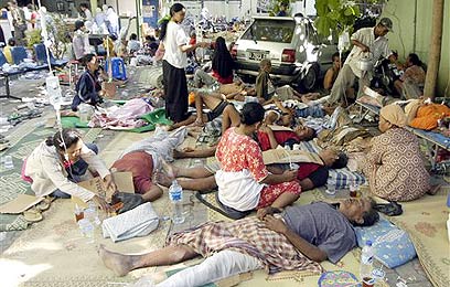 אסון כבד באי ג'אווה באינדונזיה: רבבות תושבי אינדונזיה לנו הלילה (יום א') ברחובות ובשדות אורז מחשש לרעשי משנה, לאחר שלפחות 3,731 בני אדם ניספו ברעש האדמה בעוצמה של 6.3 בסולם ריכטר שפקד את האי ג'אווה. מוקד הרעש היה בג'וגג'קרטה ובנטול שנמצאות במרכז האי. בצלב האדום מעריכים כי 200 אלף איש נפגעו באסון. כוחות סיוע ניסו להגיע בכל דרך לאזור הפגוע, כאשר דרכי הגישה קרסו.