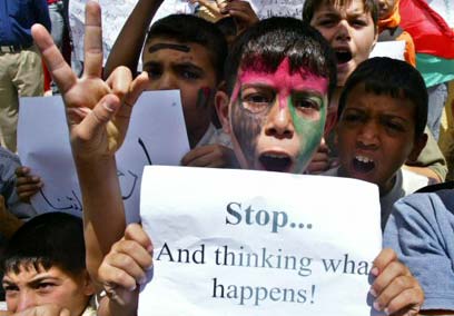 מחאת הילדים בחאן-יונס (צילום: רויטרס)