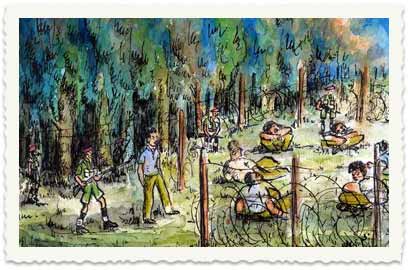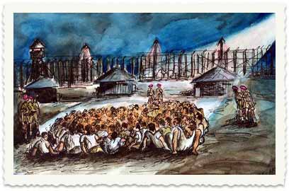 אוסף רגעים שהנציח במכחולו הצייר יעקב זן, שנעצר במהלך אירועי השבת השחורה, ממחיש בצבעים את חיי העצורים במחנה לטרון. 60 שנה אחרי אותה שבת שחורה אנחנו מפרסמים כאן לראשונה קטעים מהאוסף שנשמר בארכיון עין החורש