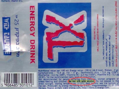 במשקה האנרגיה XL, למשל, אותו מייבאת חברת פאוזה סמסום מנצרת, כתוב במפורש על עטיפת הפחית אזהרה באנגלית לפיה "אין לערבב עם אלכוהול" (ראו תמונה). אלא שמסתבר שהיבואן לא טרח לתרגם את האזהרה הזו לעברית.