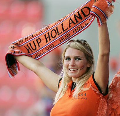 אוהדת הולנד, כשבמשחק עוד היתה אווירה טובה (צילום: רויטרס)