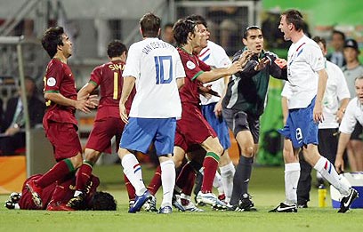 עשרות תיקולים, דחיפות, מהלומות וקללות, 16 צהובים, ארבעה אדומים ושער בודד אחד - זה מה שהיה לנו בתפריט העמוס והברוטאלי בלילה האלים בנירנברג. הולנד ופורטוגל, שתי נבחרות שגרמו לאוהדי הכדורגל לפנטז ערב המפגש ביניהן על משחק כדורגל איכותי ומרתק, העדיפו בסופו של דבר להתקוטט במשך 90 (או יותר נכון 100, עם תוספת הזמן) דקות בלילה אותו אף אחת משתי הנבחרות לא תרצה לזכור.