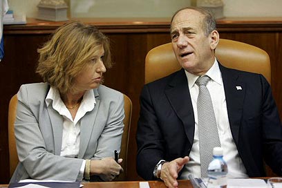 אולמרט ולבני בישיבת הממשלה (צילום: רויטרס)