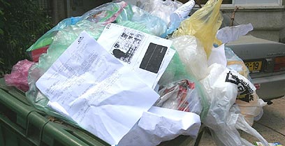 הפח והמסמכים. חשופים לכל (צילום: עופר עמרם)