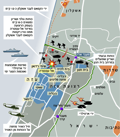 חרדה רבה אחזה בצהריים בפרברי העיירה בית להיא שבצפון רצועת עזה, עם הסתערות כוחות צה"ל על שכונת אל-עטטרה שבמקום. תושבים דיווחו על חיילים שמזנקים מהגגות ומבין העצים, "כולם יורים על כולם ויש מהומה רבה". בחילופי האש במקום נהרג אחד התושבים הפלסטינים ושני חיילים נפצעו באורח קל. למרות הפעילות, שהגיעה כבר לעומק 7 ק"מ בתוך הרצועה - ירי הרקטות לעבר יישובי עוטף עזה נמשך גם היום, ללא נזק או נפגעים.