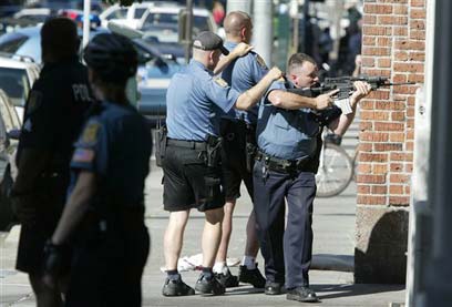עדי ראייה דיווחו כי לאחר שנכנס לבניין עלה האיש לגג, שם נשמעה יריה אחת ולאחר מכן הוא חזר לתוך הבניין והם שמעו כמה וכמה יריות. "הוא פשוט ירה לכל הכיוונים", סיפרה מרלה מיסלין-דיטריך, שעובדת במקום. היריות הפסיקו לאחר זמן קצר, עוד בטרם השוטרים הגיעו למקום, התעמתו עם היורה ועצרו אותו. חלק גדול מהעובדים הצליחו להימלט כשהחלו היריות, דרך הדלת האחורית.