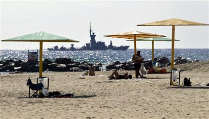 חוף הים בחיפה. מנסים לחזור לשיגרה (צילום: איי פי)