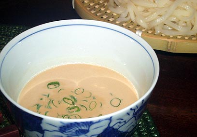 הרוטב מוגש בימי הקיץ החמים והלחים של טוקיו כתוספת לאטריות סובה או אודון קרות או לאטריות אהובות אחרות (אורז צלופן וכו'). מתכון של הגב' מאסאקו נאקאמורה.