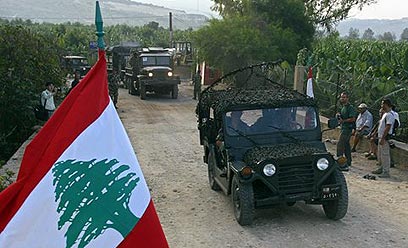 חיילי צבא לבנון חוצים את הליטני בדרך דרומה (צילום: איי.פי)