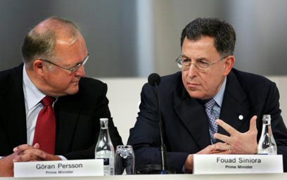 ראש ממשלת לבנון, פואד סניורה, תקף את ישראל במסיבת עיתונאים בוועידת המדינות התורמות ללבנון, שנערך בשטוקהולם: "בעוד שאנו פעלנו מייד בהתאם להחלטה 1701 של האו"ם, ישראל הפרה את הפסקת האש בתוך שלושה ימים מאז נכנסה לתוקף". הוא הוסיף כי ישראל גרמה ללבנון נזקים במיליארדי דולרים. דיווח: משלחת ביטחונית גרמנית בדרך לביירות במסגרת המאמצים לעסקת חילופי שבויים