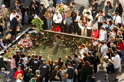 ביום ראשון הניחו בוש ורעייתו לורה זרים באתר התרסקות מגדלי התאומים בניו יורק, וכיבדו את זכר הנספים בדקת דומייה ובתפילה בכנסיית "סנט פול" הסמוכה.