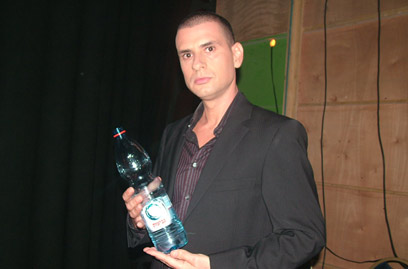 אייל קיציס מציג פסלון חלופי (צילום: קרן נתנזון)