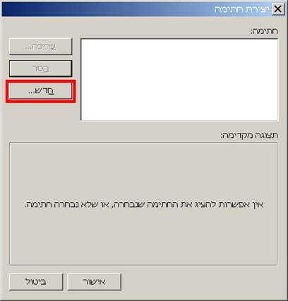 הקליקו על הכפתור חדש. יופיע חלון יצירת חתימה חדשה.