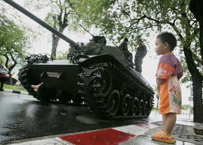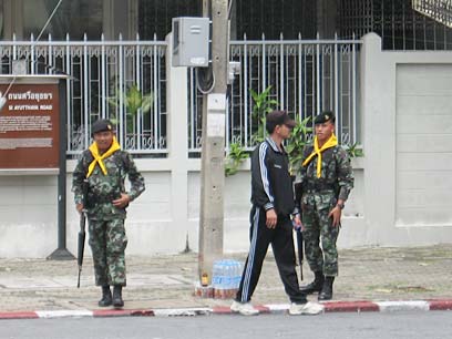 אלפי חיילים מוצבים ברחובות בנגקוק ובכבישים ניכרים היטב סימני החריכה של הטנקים. אבל מי שחיפש אלימות או יריות, לא ימצא. ילדים וגם תיירים, בהם ישראלים, מטיילים ומצטלמים עם חיילים מקומיים. רבים חיכו שעות ליד טלפון להתקשר להורים המודאגים. בינתיים, מזמינים עוד שייק ונודלס ומחכים למהדורת החדשות הבאה. כתב ynet בדיווח מיוחד מבנגקוק