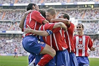 אתלטיקו מדריד חוגגת יתרון מוקדם בברנבאו (צילום: איי פי)