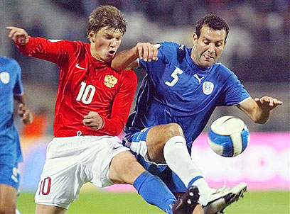 דקות הפתיחה התאפיינו בשליטה רוסית בכדור, בעוד החבורה הישראלית התרכזה בהגנה. ההתקפה הראשונה של ישראל, בדקה החמישית, נגמרה באסון - גל אלברמן איבד כדור בחצי הרוסי ופבל פוגרבניאק שלח נהדר את אנדריי ארשבין. החלוץ הרוסי לא נבהל משמעון גרשון שרדף אחריו ובמיומנות שלח את הכדור לפינה השמאלית של דודו אוואט, 0:1 לרוסיה.