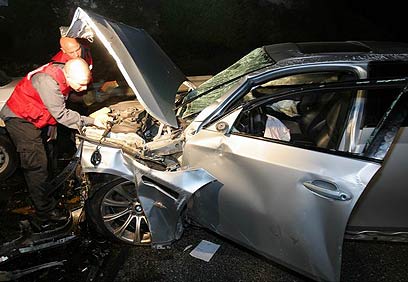 עקיפה אחת מסוכנת, שלושה הרוגים. הרכב הפוגע (צילום: חגי אהרון)