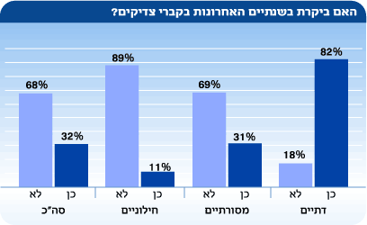 אחת התופעות המעניינות שעלו מהסקר היתה הרצון של ישראלים רבים להתקרב למורשת היהודית דרך ביקור בקברי צדיקים ברחבי הארץ. לשאלה "האם ביקרת בשנתיים האחרונות בקברי צדיקים" השיבו בסקר ynet ומכון סמית 32%, כשליש מהנשאלים - בחיוב. 11% מהחילונים אמרו כי ביקרו בקברי צדיקים (בערך 1 מכל 10), לעומת 31% מהמסורתיים ו-82% מהדתיים. רפי סמית מציין כי האחוז שציין שביקר גבוה בקרב צעירים עד גיל 29, יותר מאשר בקרב המבוגרים מעל גיל 50.