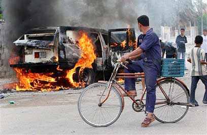 רכב הקונסוליה הבריטית בוער בבצרה (צילום: איי.פי)