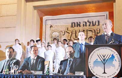 אולמרט, בביקור בבית כנסת במוסקבה (צילום: אבי אוחיון, לע"מ)