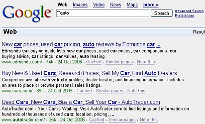 17. צאו למסע קסום. סימן הטילדה בפינת המקלדת שלכם הוא כלי שימושי בחיפושים בגוגל. הכניסו אותו לפני מילה באנגלית, ללא רווח ביניהם, כדי שגוגל יחפש עמודים הכוללים גם את המונח הזה וגם את המילים הנרדפות לו. דוגמה: אם תחפשו auto~, תקבלו גם עמודי אינטרנט הכוללים את המונחים cars, trucks, automobiles ועוד.