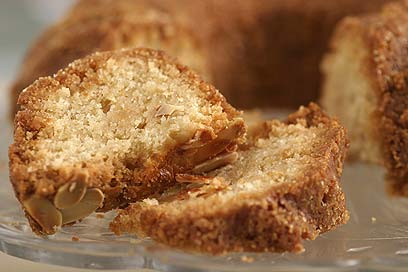 - כשמוציאים את העוגה מהתנור חותכים לפרוסות ומשחררים בסכין גם את שוליה, כדי שלא תדבק לתבנית, אך לא מוציאים אותה מהתבנית. מצננים היטב.