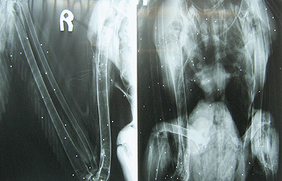 יותר מ-100 כדוריות עופרת נתגלו בגופו של השקנאי הפצוע (צילום: אוהד הצופה, רשות הטבע והגנים)