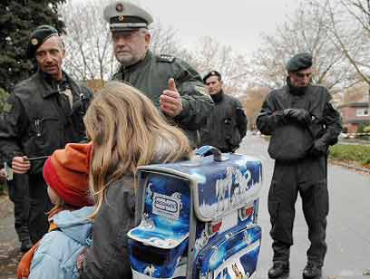 שוטרים מפנים את ילדי בית הספר, הבוקר באמסדטן (צילום: איי.אף.פי)