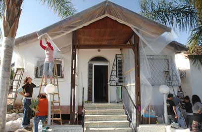 עוטפים את הבית בשדרות בניילונים (צילום: אמיר כהן)