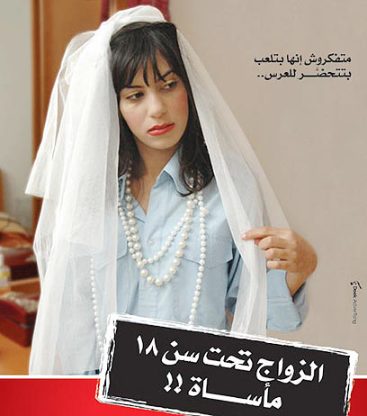 קמפיין ראשון מסוגו בחברה הערבית שהושק לאחרונה, יוצא נגד התופעה הנפוצה של נישואי קטינות. "חתונה וכניסה להריון בגיל צעיר כל-כך היא אחד הסממנים המובהקים של אפליית נשים", אומרות יוזמות הקמפיין. "הנישואים המוקדמים קוטעים את מהלך החיים התקין של הנערות, ומונעים כל אפשרות להגשמה עצמית"